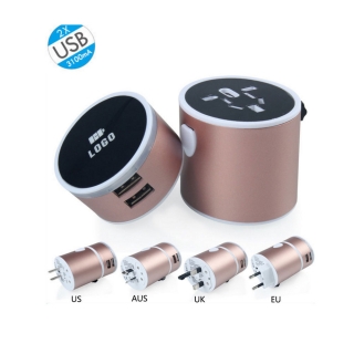 There are four sockets: US, UK, EU, AUS. Double USB output maximum electricity 3.1A each. Quality passes through CE, RoHs and FCC Certification. Your Logo can be imprinted with backlight effect. Small size is portable to carry in your travel.