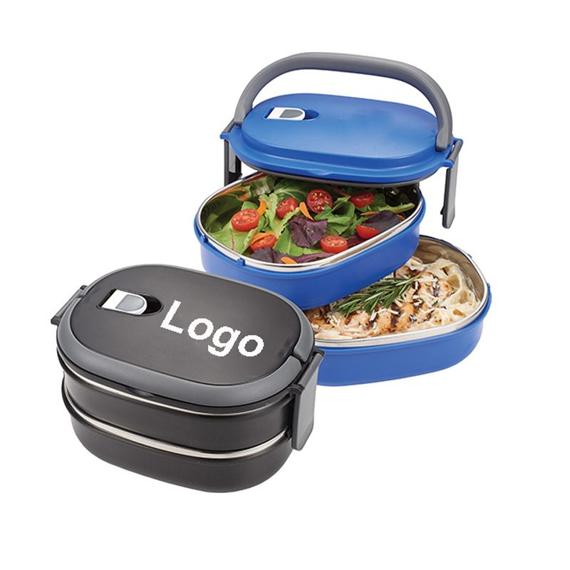 This promotional oval lunch box is a practical appreciation gift. It features two tiers for seperating the food contents. This functional lunch box is available in black and blue colors to choose from. Your logo can be featured on the top for better visibility.