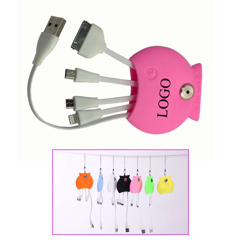 Let your phone and electronics plug in computer or charger power with our multi USB hub.This 4 in one adapter houses 4 regular use connectors in it's soft silicone pouch. Suit for Apple phones, I pad and all the electronics which have the socket of MINI PIN or MICRO PIN(Such as PAD,GALAXY TAB,SAMSUNG phones,HTC phones and so on). Each port can be used to charge power or transmit data. Your customized LOGO can be imprinted on the outside of silicone fish.