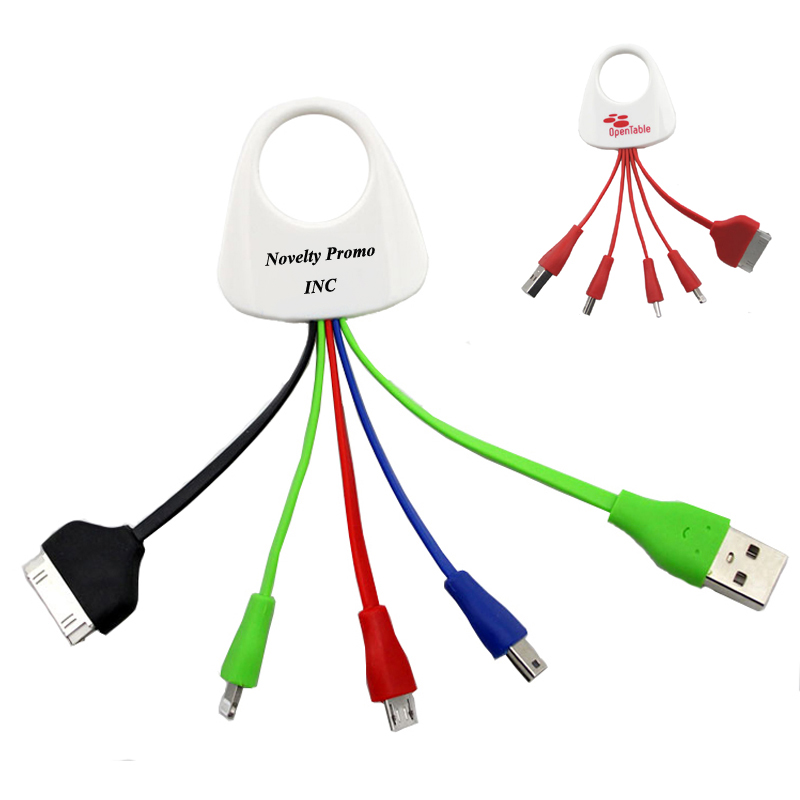 Our Multiple Key Ring USB hub, 4-in-1 data cable. It works both as power charging and data connector.It is applied to Windows and Mac system.I phone,I pad 30 pin, 8 pin USB, micro USB, mini USB and USB connector.Easy to carry away,Lightweight and compact.This is a good travelling and office partner. Your LOGO or artwork can be imprinted on the plastic ring.
