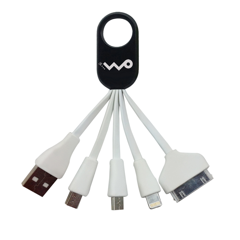 Our Multiple Key Ring USB hub, 4-in-1 data cable. It works both as power charging and data connector.It is applied to Windows and Mac system.I phone,I pad 30 pin, 8 pin USB, micro USB, mini USB and USB connector.Easy to carry away,Lightweight and compact.This is a good travelling and office partner. Your LOGO or artwork can be imprinted on the plastic ring.