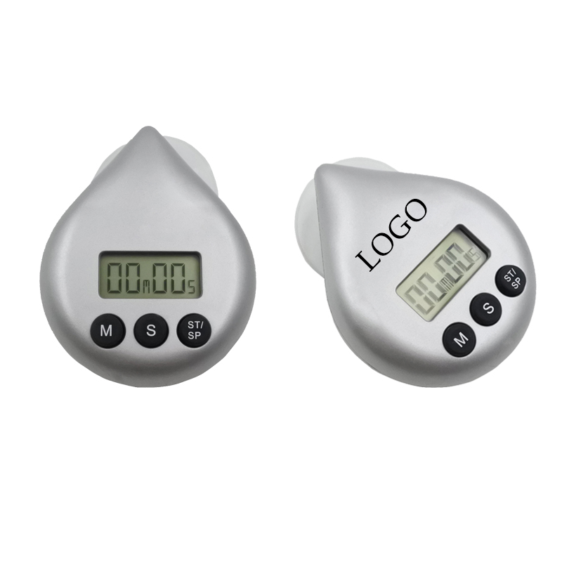 This digital timer, water drop shaped, waterproof, can be used in most places, even in the bathroom. Designed with sucker backing, attached to the tile firmly. Easily set timer for count up and count down (up to 99 minutes). Powered by a buttom battery(inclued).