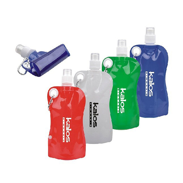 Collapsible Water Kettle with Carabiner, Calabash shape, 15 OZ volume, made from three layers food grade (BPA-free) material. It's lightweight and compact for easy carrying. The convenient carabiner makes it easy to clip to your pack, belt-loop or purse. Your customized LOGO can be silkscreen or machine imprinted on.