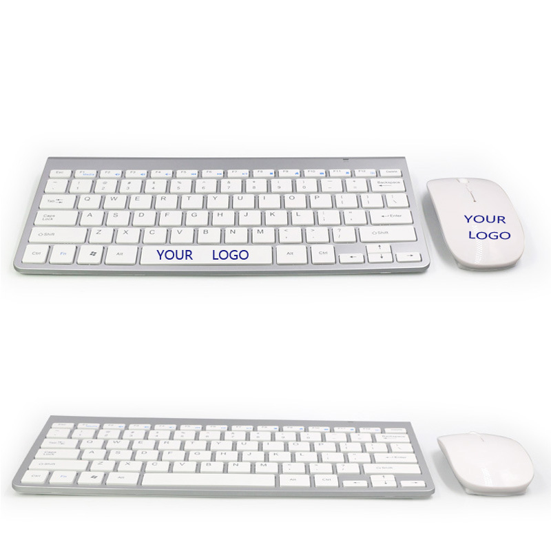 "A new generation of mini wireless keyboard and mouse. Game-level performance make your office more efficient. It can be used for up to six months in power saving mode. This product uses ergonomic design and chocolate buttons are quieter than normal. It also has high sensitivity and powerful multimedia features. Your logo can be printed on the space bar and the tail of the mouse. Keyboard: 11.2""x5.3""x0.7"", Mouse: 4.2""x2.3""x0.9"".